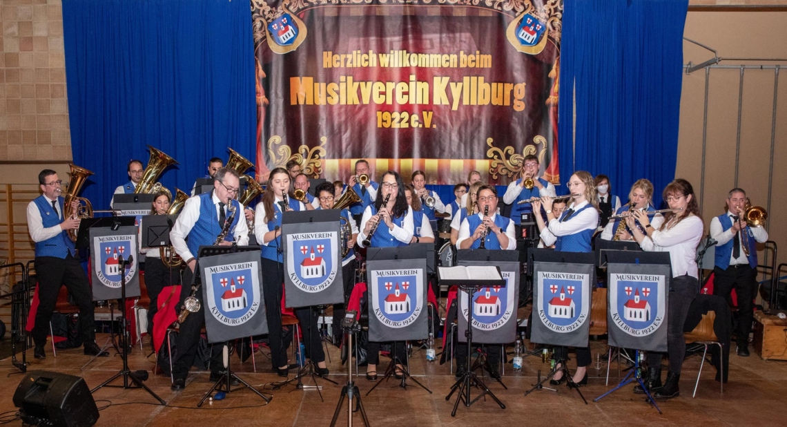 Erstmals seit 2020 konnte der Musikverein Kyllburg wieder zu seinem traditionellen Jahreskonzert in die Turnhalle der Grundschule Kyllburg einladen. Dies war zum einen der Corona-Pandemie geschuldet, zum anderen dem großen Jubiläumsfest 2022, das keine Zeit für weitere Konzertvorbereitungen ließ. Nach so langer Zeit ohne Konzert war es nicht verwunderlich, dass der Saal schließlich bis auf den letzten Platz gefüllt war.